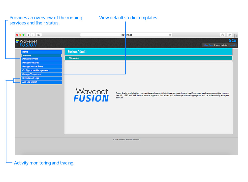 Fusion studio simplifies the subscriber service creation process by eliminating the need to code at every step of a call flow. The building blocks of pre configured modules empower users to design call flows by dragging and dropping modules to build a service flow of their choosing.