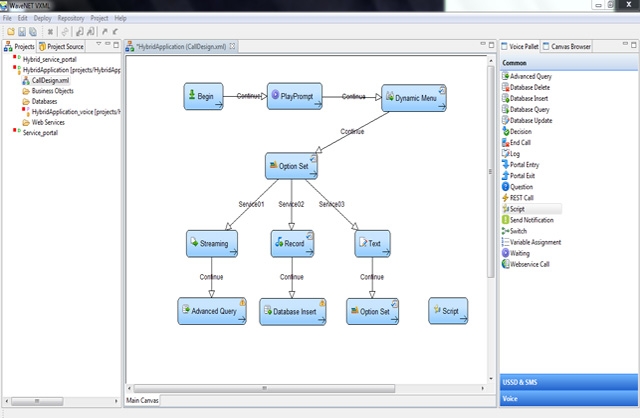 The service call flows can be created within a fraction of the time taken by traditional development methods by employing the drag and drop functionality. This is incredibly vital in gaining a competitive advantage by being able to quickly deploy the services and reducing the time taken to market.